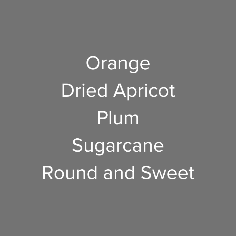 Notes: Orange, Dried Apricot, Plum, Sugarcane, Round & Sweet